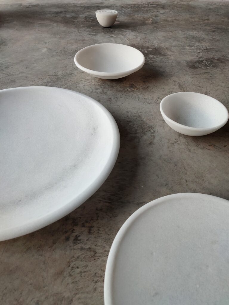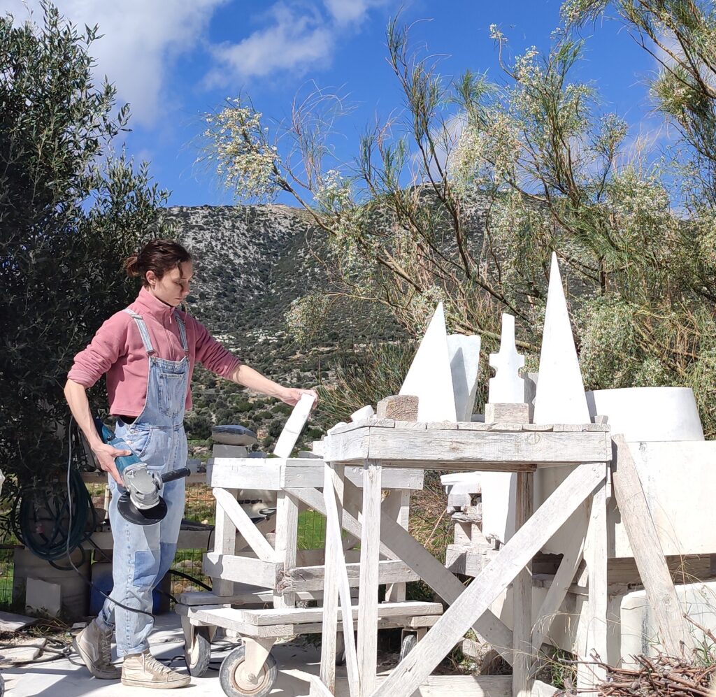 In October 2022 she settled on the island of Naxos to work with marble and since then she apprenticed with the German sculptor and teacher Ingbert Brunk. Her contact with Naxian marble gives it a new possibility as the process here is abstract and the form is contained and disclosed. She is fascinated by the malleability of such a hard material, and this transparency that characterizes it, allowing the light to penetrate through it.