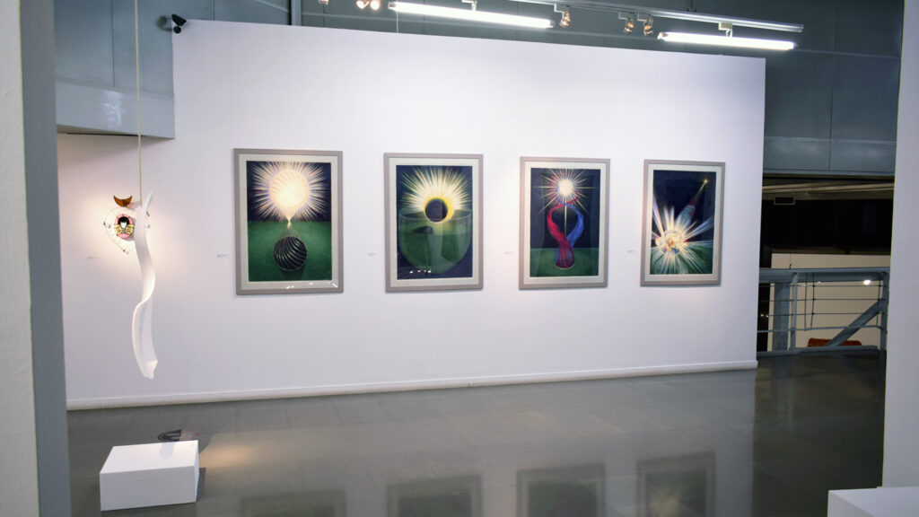 It is Eros – the driving force, the radiant glow of union that is experienced with the recognition of Spirit into Matter. It is the power that urges man in the evolutionary journey of consciousness, to die, to be born and to taste Immortality. The artists address the power of Eros.